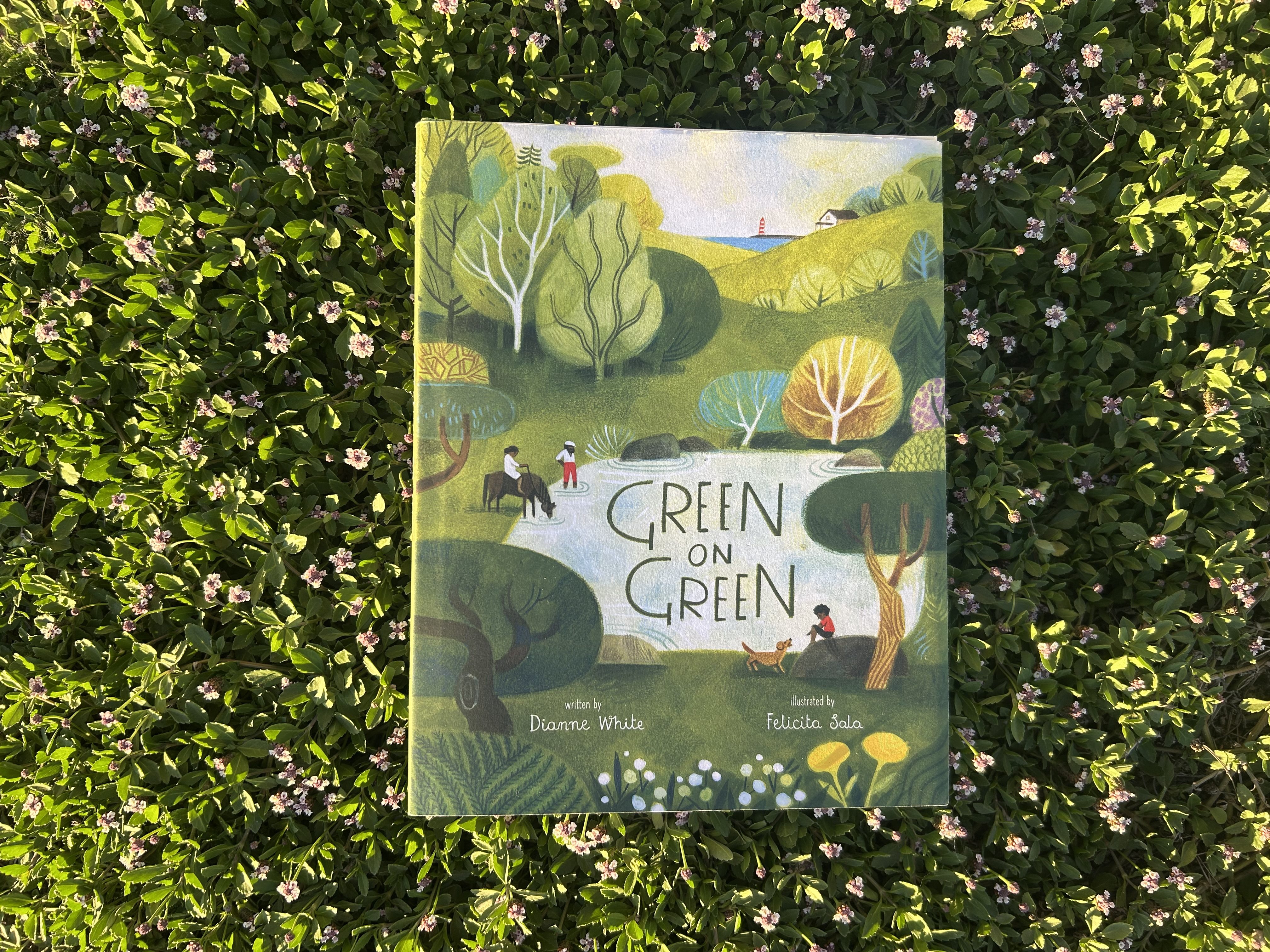 I own many books from her, but in this very first post I would like to talk about a book written by Dianne White and illustrated by Felicita Sala. It is called “Green on Green”.